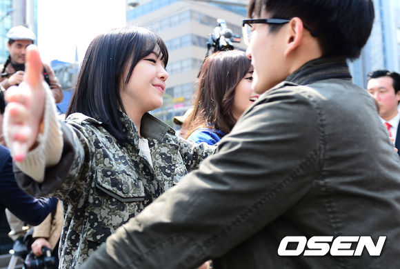 걸그룹 걸스데이가 3일 오후 명동에서 1위 공약으로 내세웠던 '명동 프리허그 이벤트'를 진행했다. 멤버 민아가 팬들과 포옹하고 있다.