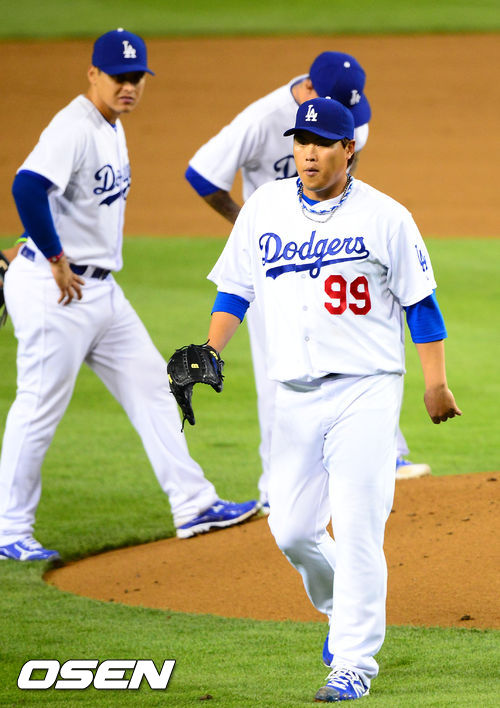 7회초 LA 다저스 선발 류현진이 마운드를 내려가고 있다. /rumi@osen.co.kr