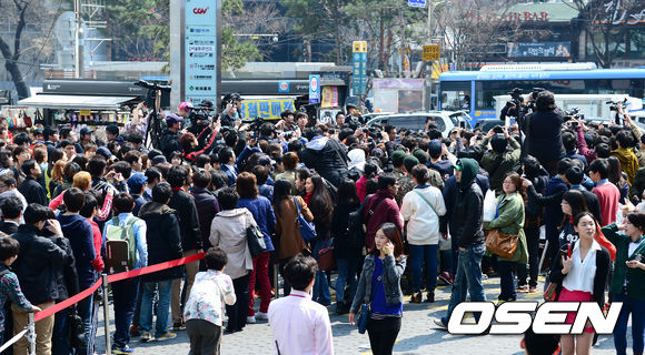 걸그룹 걸스데이가 3일 오후 명동에서 1위 공약으로 내세웠던 '명동 프리허그 이벤트'를 진행했다. 명동을 메운 많은 팬들이 멤버들과의 만남을 갖기 위해 줄을 서서 차례를 기다리고 있다.
