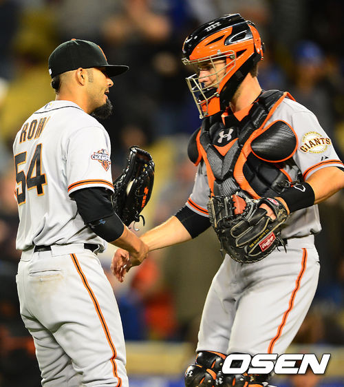 경기를 마치고 샌프란시스코 세리지오 로모가 기쁨을 나누고 있다. /rumi@osen.co.kr
