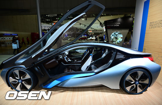 이 외에 BMW는 바람의 형상을 한 콘셉트 전기차 ‘i8’를 전시했다. ‘i8’은 전기모터, 고성능 3기통 내연 엔진을 결합해 354마력의 출력, 37㎞/ℓ 연비(유럽 기준)를 실현했다. 정지상태에서 100㎞/h까지 5초 이내에 도달하며, 4개의 바퀴가 주행상황에 따라 사륜구동 시스템처럼 구동된다.
