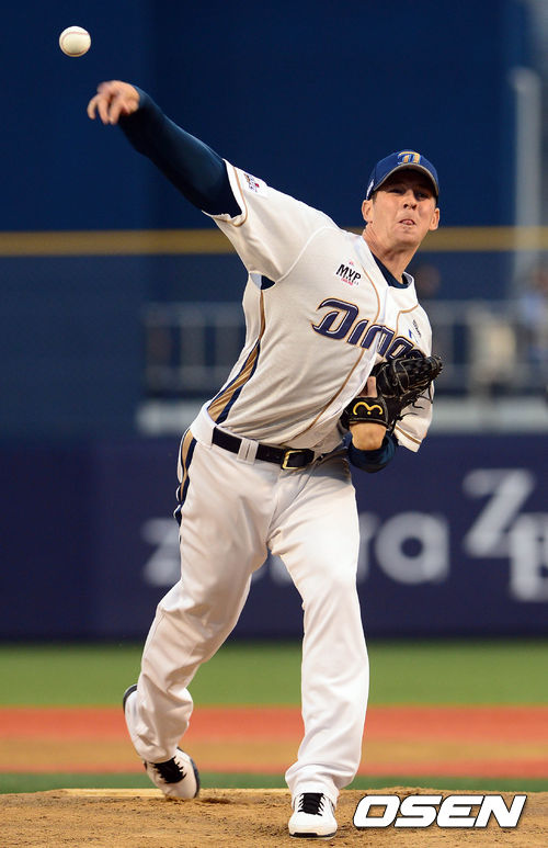 3일 오후 창원 마산구장에서 열린 '2013 한국야쿠르트 세븐 프로야구' NC 다이노스와 롯데 자이언츠의 경기 NC 선발 찰리가 역투하고 있다.