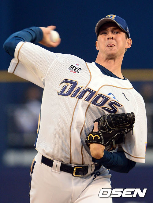 3일 오후 창원 마산구장에서 열린 '2013 한국야쿠르트 세븐 프로야구' NC 다이노스와 롯데 자이언츠의 경기 NC 선발 찰리가 역투하고 있다.