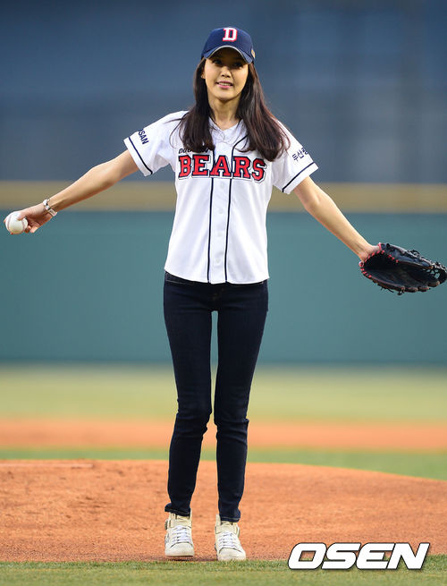 3일 오후 서울 잠실야구장에서 '2013 한국야쿠르트 세븐 프로야구' 두산 베어스 대 SK 와이번스의 경기가 열렸다. 배우 채정안이 시구자로 나서 공을 던질 준비를 하고 있다.