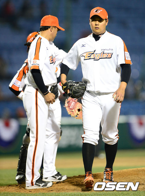 5회초 무사 만루에서 한화 유창식이 마운드를 내려가고 있다.