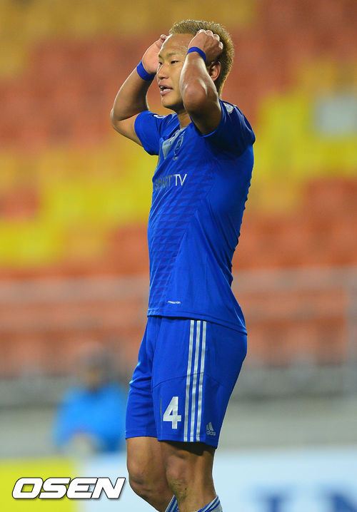 3일 오후 경기도 수원시 수원월드컵경기장에서 열린 2013 아시아축구연맹(AFC) 챔피언스리그 H조 수원 삼성과 가시와 레이솔의 경기 전반 수원 정대세가 골문을 흔들었으나 오프사이드 판정나자 아쉬워하고 있다