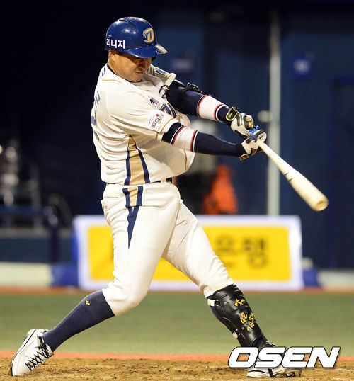 3일 오후 창원 마산구장에서 열린 '2013 한국야쿠르트 세븐 프로야구' NC 다이노스와 롯데 자이언츠의 경기 8회말 선두타자 김태군이 우중간 2루타를 치고 있다.