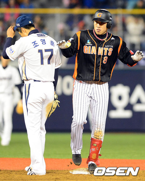3일 오후 창원 마산구장에서 열린 '2013 한국야쿠르트 세븐 프로야구' NC 다이노스와 롯데 자이언츠의 경기 10회초 1사 2루 전준우가 1타점 2루타를 치고 2루 베이스에 서 있다.