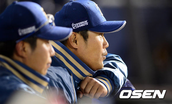 3일 오후 창원 마산구장에서 열린 '2013 한국야쿠르트 세븐 프로야구' NC 다이노스와 롯데 자이언츠의 경기 10회말 2사 허준의 타석, 이호준이 경기를 지켜보고 있다.