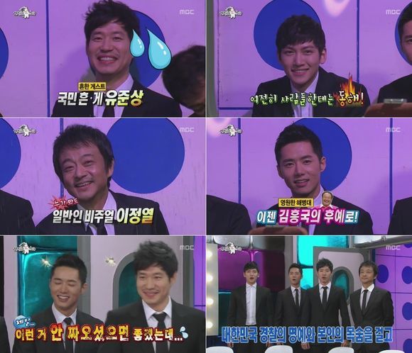 검은색 수트를 맞춰입고 등장한 네 사람은 '대한민국 경찰의 명예와 본인의 목숨을 걸고 시청자 여러분을 지키겠습니다'는 멘트로 갑작스럽게 뮤지컬 홍보에 시동을 걸었다. 이 모습을 지켜보던 '라디오스타'의 악동 MC들 김국진, 윤종신, 규현, 유세윤은 속수무책으로 당했다.