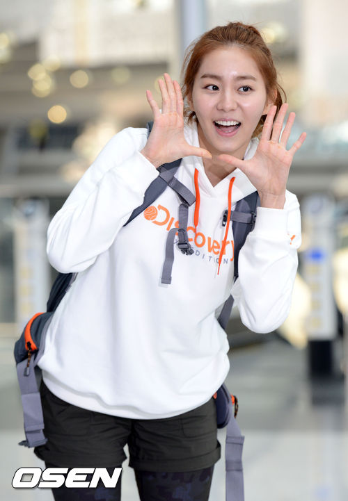 출국전 유이가 포토타임을 갖고 있다.
