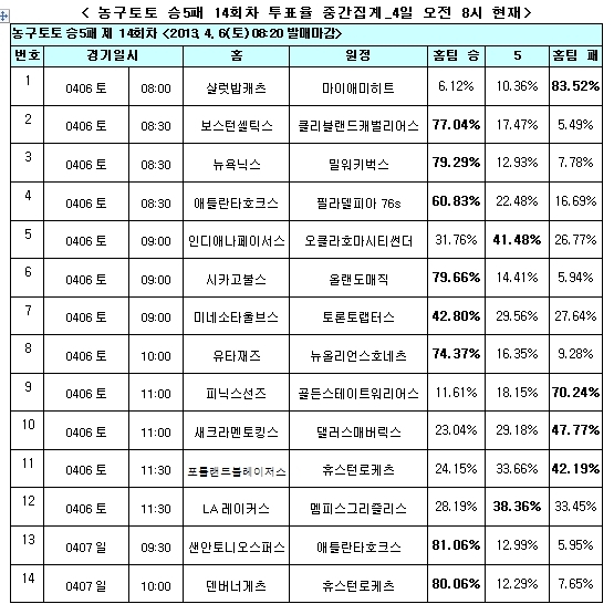 농구토토 승5패 14회차 투표율 중간 집계 결과
