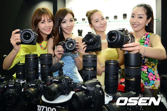 4일 오전 서울 삼성동 코엑스에서 열리고 있는 '제22회 서울 국제사진영상기자재전(Photo & Imaging 2013, 이하 P & I)' 니콘 부스에서 모델들이 제품을 선보이고 있다.