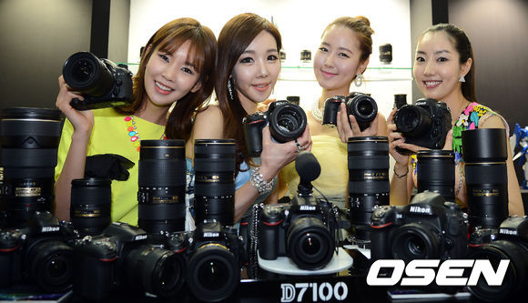 4일 오전 서울 삼성동 코엑스에서 열리고 있는 '제22회 서울 국제사진영상기자재전(Photo & Imaging 2013, 이하 P & I)' 니콘 부스에서 모델들이 제품을 선보이고 있다.