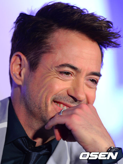 4일 오전 서울 여의도 콘래드호텔에서 진행된 영화 '아이언맨3'(셰인 블랙 감독)의 로버트 다우니 주니어 내한 공식기자회견에서 배우 로버트 다우니 주니어가 미소 짓고 있다