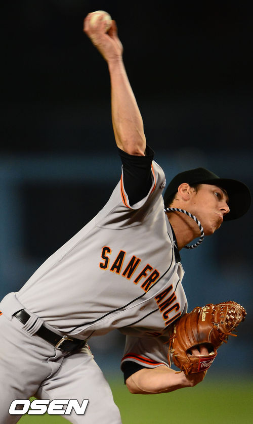 자이언츠 팀 린스컴이 힘차게 공을 뿌리고 있다.