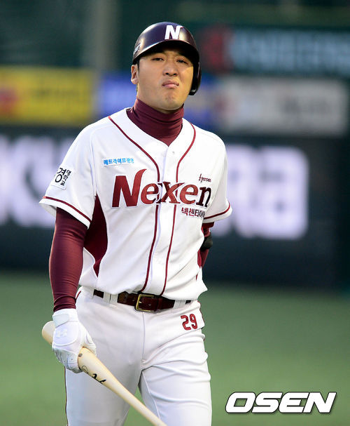 1회말 1사 3루에서 넥센 이택근이 삼진을 당하고 아쉬워하고 있다.