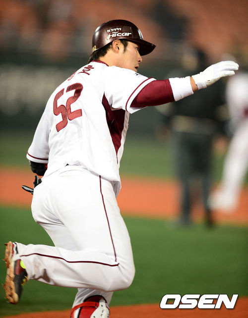 5회말 1사 1루에서 넥센 박병호가 역전 투런포를 날리고 기뻐하고 있다.