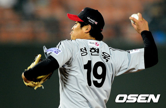 8회말 마운드에 오른 LG 정현욱이 힘차게 볼을 뿌리고 있다.