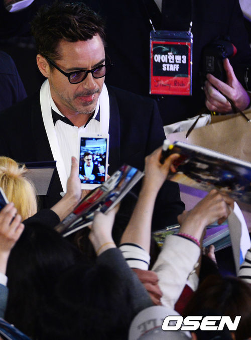 4일 오후 서울 영등포 타임스퀘어에서 진행된 영화 '아이언맨3' 레드카펫 행사에서 로버트 다우니 주니어가 팬들과의 만남을 갖고 있다.
