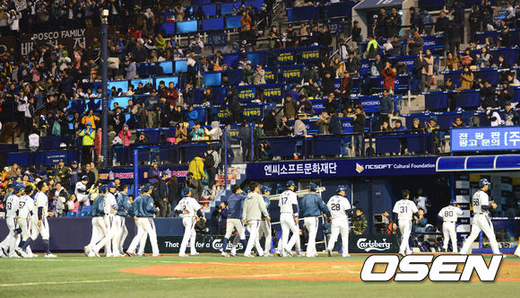 4일 오후 창원 마산구장에서 열린 '2013 한국야쿠르트 세븐 프로야구' NC 다이노스와 롯데 자이언츠의 경기 종료 후 NC 선수들이 경기장을 빠져나가고 있다.