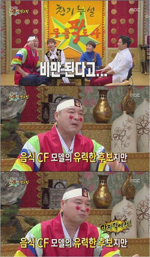 전노민의 고백에 강호동은 “나도 햄버거 광고 모델을 할 뻔 했다”면서 “그런데 항상 최종단계에서 탈락한다”고 말했다. 이어 그는 “항상 음식 광고는 불발된다”면서 “비만 이미지 때문에 내가 광고를 하면 그 음식을 먹었을 때 비만이 될 것 같다는 생각이 있는 것 같다”고 고백했다.