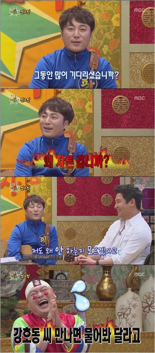 뿐만 아니라 그는 “시청자들이 왜 내가 ‘무릎팍도사’에 안 나오냐고 묻는데 나도 모르겠다고 답했다”면서 “시청자들에게 강호동 씨 만나면 물어봐달라고 했다”고 가시가 돋혔지만 그래서 재밌는 발언을 이어갔다.