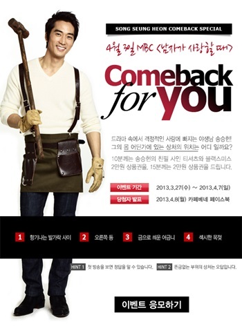 ㈜카페베네의 이탈리안 패밀리 레스토랑 블랙스미스(www.blacksmith.co.kr)가 메인 모델 송승헌의 드라마 복귀를 응원한다. 드라마 속 송승헌 배역과 관련 된 퀴즈를 내고 답을 맞히는 이들에게 선물을 주기로 했다.
