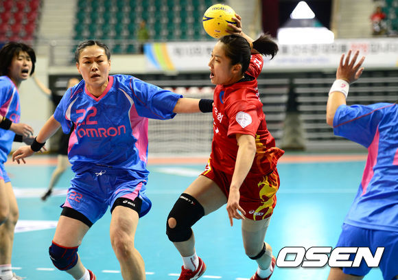 5일 오후 경북 구미 박정희체육관에서 열린 제10회 동아시아클럽핸드볼선수권대회 한국 인천시체육회와 일본 오므론의 경기, 전반 인천시체육회 문필희가 슛을 시도하고 있다.
