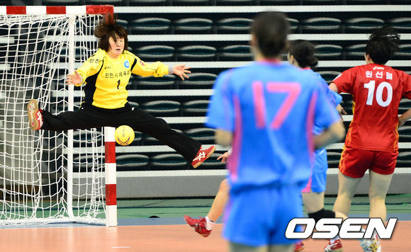 5일 오후 경북 구미 박정희체육관에서 열린 제10회 동아시아클럽핸드볼선수권대회 한국 인천시체육회와 일본 오므론의 경기, 전반 인천시체육회 오영란이 오므론의 슛을 막아내고 있다.