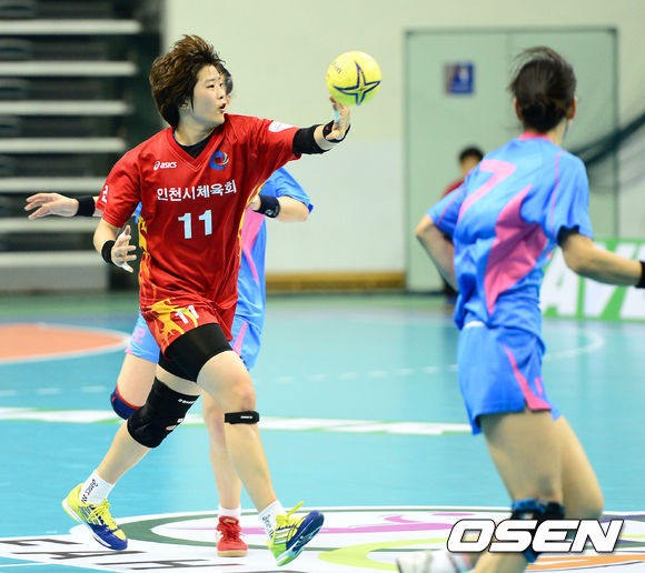5일 오후 경북 구미 박정희체육관에서 열린 제10회 동아시아클럽핸드볼선수권대회 한국 인천시체육회와 일본 오므론의 경기, 전반 인천시체육회 류은희가 동료를 향해 패스를 시도하고 있다.