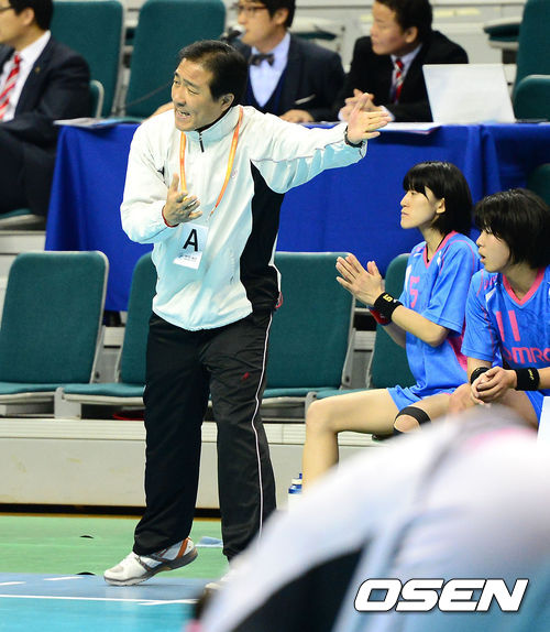 5일 오후 경북 구미 박정희체육관에서 열린 제10회 동아시아클럽핸드볼선수권대회 한국 인천시체육회와 일본 오므론의 경기, 전반 오므론 황경영 감독이 선수들에게 작전을 지시하고 있다.
