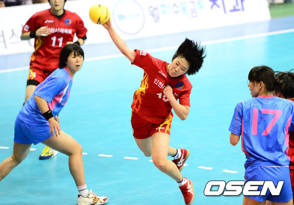 5일 오후 경북 구미 박정희체육관에서 열린 제10회 동아시아클럽핸드볼선수권대회 한국 인천시체육회와 일본 오므론의 경기, 후반 인천시체육회 신은주가 슛을 시도하고 있다.