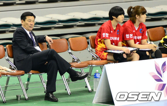 5일 오후 경북 구미 박정희체육관에서 열린 제10회 동아시아클럽핸드볼선수권대회 한국 인천시체육회와 일본 오므론의 경기, 후반 인천시체육회 임영철 감독이 경기를 바라보고 있다.