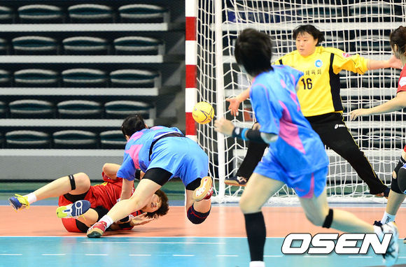 5일 오후 경북 구미 박정희체육관에서 열린 제10회 동아시아클럽핸드볼선수권대회 한국 인천시체육회와 일본 오므론의 경기, 후반 인천시체육회 류은희가 오므론의 공격을 막아내고 있다.