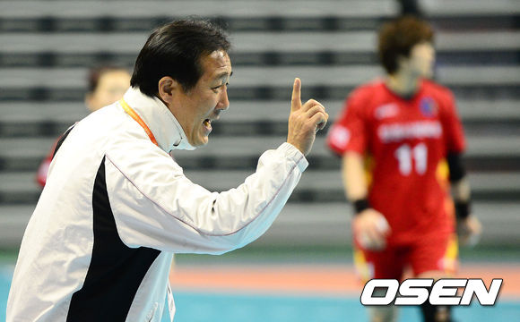 5일 오후 경북 구미 박정희체육관에서 열린 제10회 동아시아클럽핸드볼선수권대회 한국 인천시체육회와 일본 오므론의 경기, 후반 오므론 황경영 감독이 선수들에게 작전을 지시하고 있다.