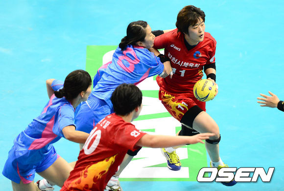 5일 오후 경북 구미 박정희체육관에서 열린 제10회 동아시아클럽핸드볼선수권대회 한국 인천시체육회와 일본 오므론의 경기, 후반 인천시체육회 류은희가 오므론 수비진을 돌파하고 있다.