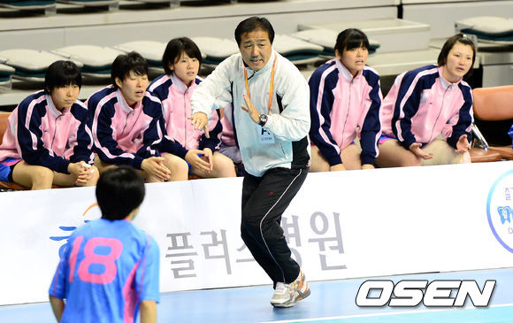 5일 오후 경북 구미 박정희체육관에서 열린 제10회 동아시아클럽핸드볼선수권대회 한국 인천시체육회와 일본 오므론의 경기, 후반 오므론 황경영 감독이 선수들에게 작전을 지시하고 있다.