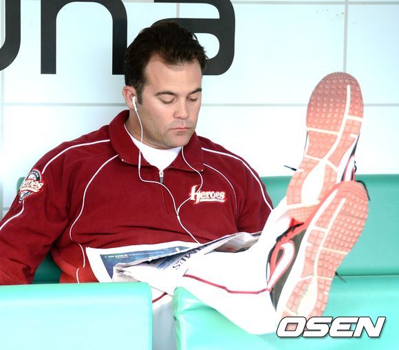 [OSEN=대전, 손용호기자] 5일 대전 한밭야구장에서 한화 이글스와 넥센 히어로즈의 경기 전 넥센 선발 나이트가 음악을 들으며 신문을 보고 있다.