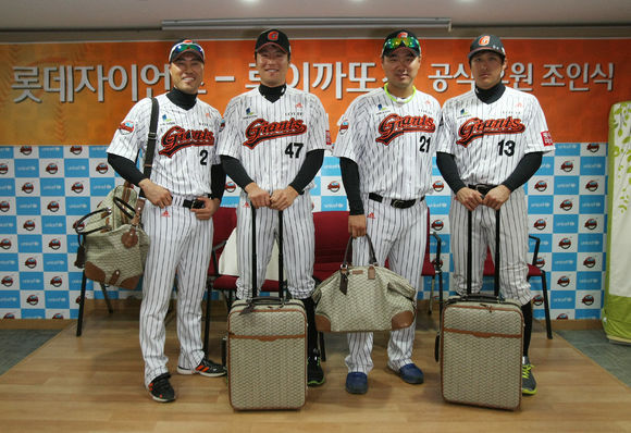 한편 이날 조인식에는 롯데 자이언츠 배재후 단장과 선수 대표로 조성환, 송승준, 강민호, 황재균과 루이까또즈 송영준 영업본부장이 참석했다.