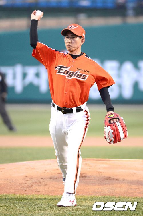 [OSEN=대전, 손용호기자] 5일 대전 한밭야구장에서 벌어진 한화 이글스와 넥센 히어로즈의 경기에 앞서 이완섭 서산 시장이 시구를 하고 있다.