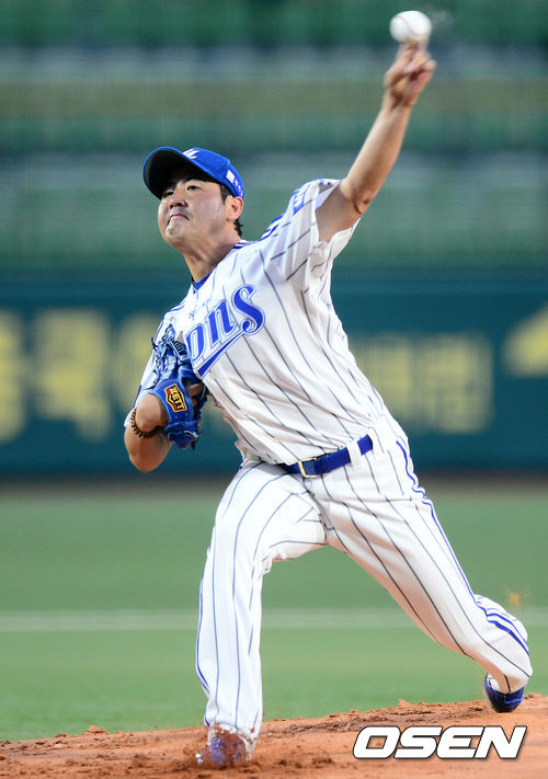 5일 오후 대구시민운동장 야구장에서 열린 2013 한국야쿠르트 세븐프로야구 삼성 라이온즈와 NC 다이노스의 경기, 1회초 무사에서 삼성 선발 투수 장원삼이 힘차게 공을 던지고 있다.