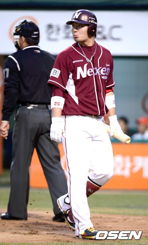 [OSEN=대전, 손용호기자] 5일 대전 한밭야구장에서 벌어진 한화 이글스와 넥센 히어로즈의 경기 2회초 넥센 박병호가 삼진을 당하고 아쉬워 하고 있다.