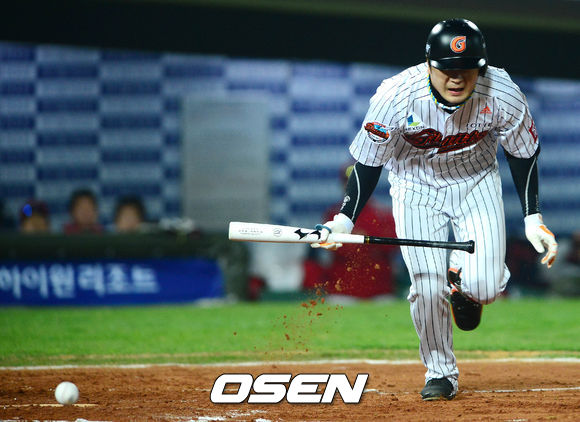 5일 오후 부산 사직구장에서 열린 '2013 한국야쿠르트 세븐 프로야구' 롯데 자이언츠와 KIA 타이거즈의 경기 2회말 1사 3루 문규현이 스퀴즈번트에 실패하고 있다.