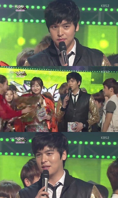 이장우는 5일 오후 방송된 '뮤직뱅크'에서 1위 시상 이후 "함께 호흡을 맞춰온 유이에게 미안하고 고맙다"고 소감을 밝혔다.
