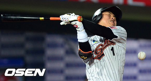 5일 오후 부산 사직구장에서 열린 '2013 한국야쿠르트 세븐 프로야구' 롯데 자이언츠와 KIA 타이거즈의 경기 3회말 1사 1루 장성호가 파울볼을 치고 있다.