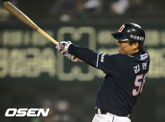 5일 오후 서울 잠실구장에서 열린 '2013 한국야쿠르트 세븐 프로야구' LG 트윈스와 두산 베어스의 경기, 5회초 2사 1루 두산 김현수가 1타점 2루타를 때리고 있다.
