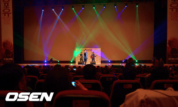 영화 '송포유'의 시사회에 앞서 미니콘서트 무대를 선보였다..