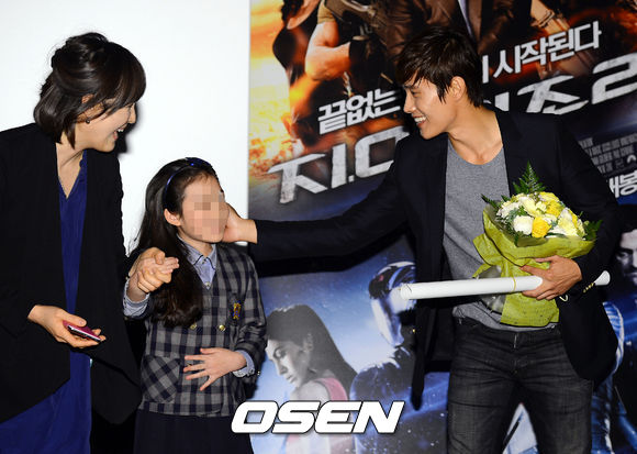 5일 오후 서울 용산CGV에서 진행된 '지.아이.조2' 이병헌 무대인사 및 관객대화에서 이병헌이 이벤트에 당첨된 팬과 인사를 나누고 있다.