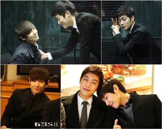 KBS 수목드라마 ‘아이리스Ⅱ'에 출연 중인 그룹 비스트 윤두준, 엠블랙 이준이 깨알 애교로 촬영 현장을 화기애애하게 만들고 있다.